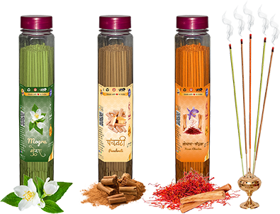 Agarbatti with pleasant fragrances of Mogra, Panchvati & Kesar Chandan. Net weight of one jar is 100 grams.
