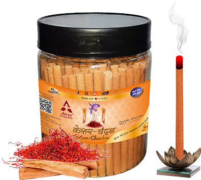 Dhoop Sticks with pleasant fragrance of Kesar Chandan. Net weight of one jar is 200 grams.