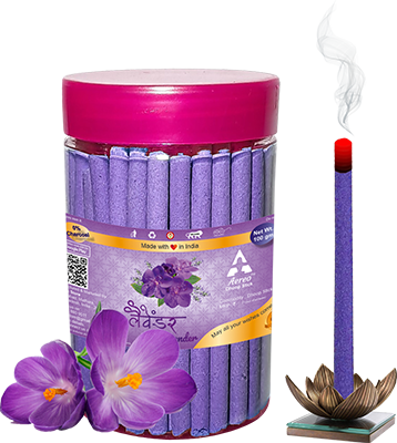 Dhoop Sticks with pleasant fragrance of Lavender. Net weight of one jar is 100 grams.
