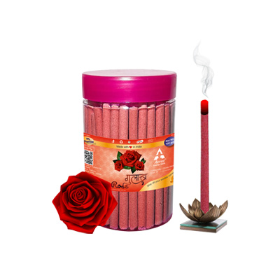 Agarbatti with pleasant fragrances of Rose & Sandal. Net weight of one jar is 100 grams.